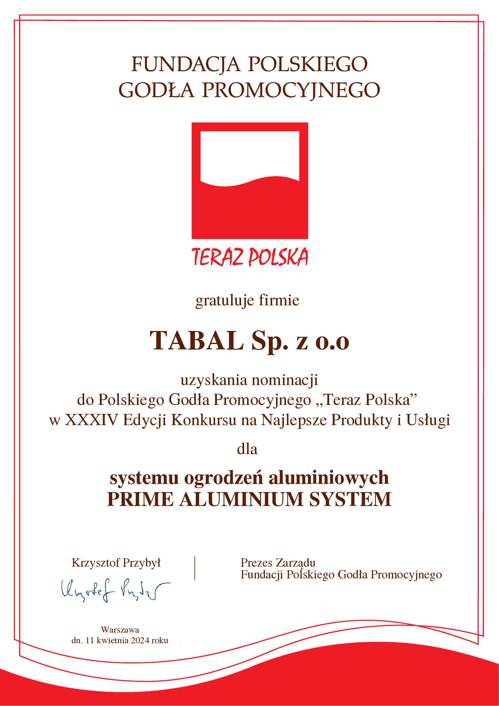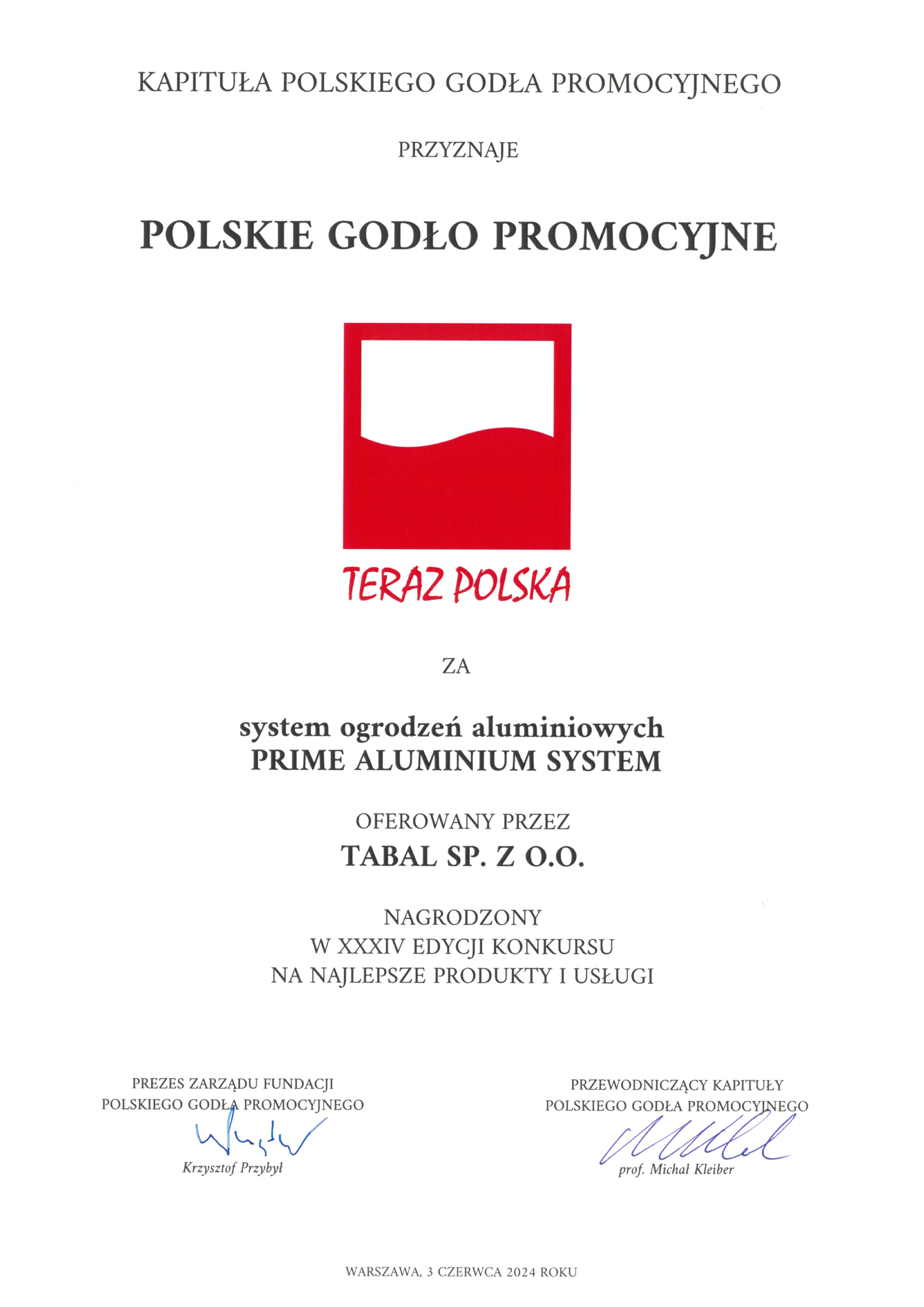 Flaga Polski OGRODZENIA ALUMINIOWE TABAL - ULOTKA, STYCZEŃ 2025