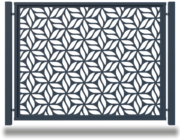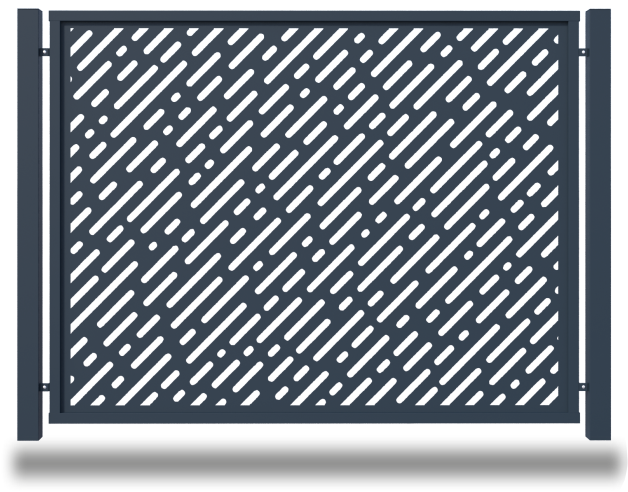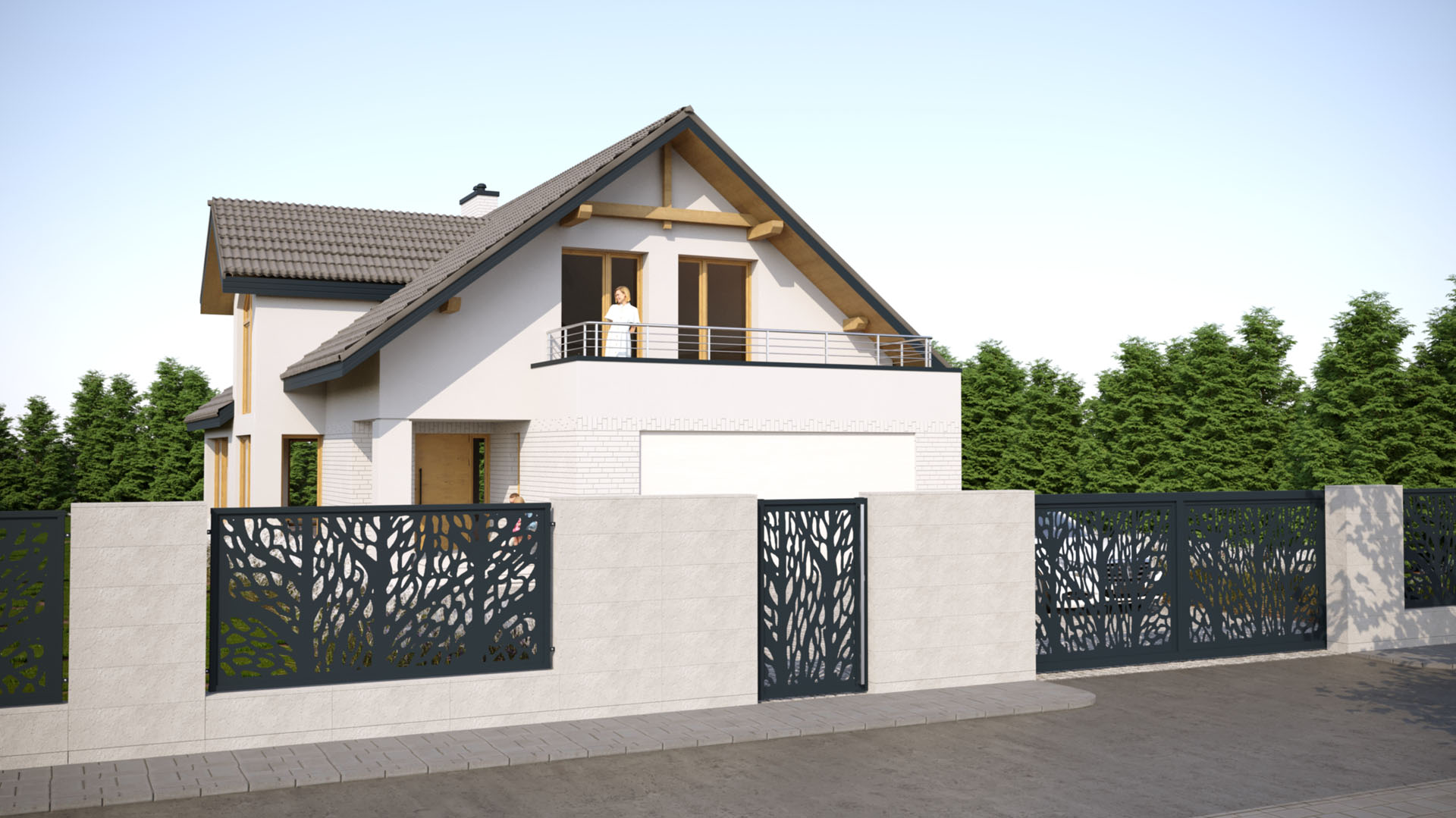 Wariant ogrodzenia z wypełnieniem z blachy dedykowany jest dla osób ceniących swoją strefę prywatną oraz wyjątkowy design. Dzięki nowoczesnej technologii cięcia laserowego możemy wykonać dla Państwa ogrodzenie z blachy aluminiowej z precyzyjnie wyciętym kształtem według Państwa upodobań.
